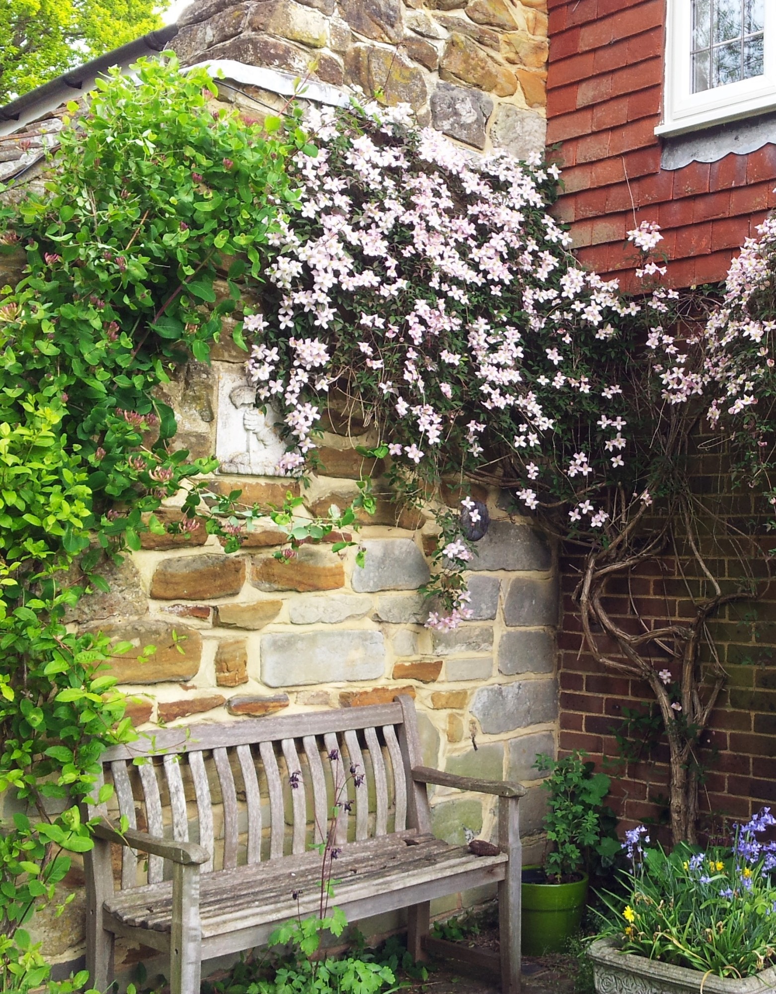 I’ll tell you another amazing story about our garden and Lyme Park. Our house is quite old, with one wall dating back to 1800, and there is a plaque built into the outside chimney depicting an arm holding a banner.