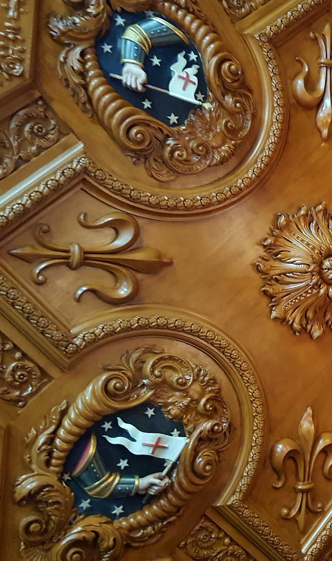 Imagine my surprise and delight when I discovered these severed arms with a banner can be found in abundance at Lyme House! How astonished I was to discover this was the ‘Augmentation of Honour’ of the Legh family, an honour bestowed on the family in 1575 by Queen Elizabeth I, in recognition of a courageous rescue of the Black Prince standard by a Legh family ancestor, Thomas Danyers.